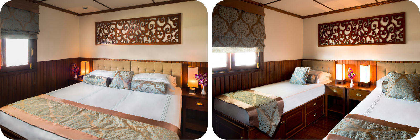De kajuiten, gemeenschappelijke delen : allemaal luxe & veel sfeer.