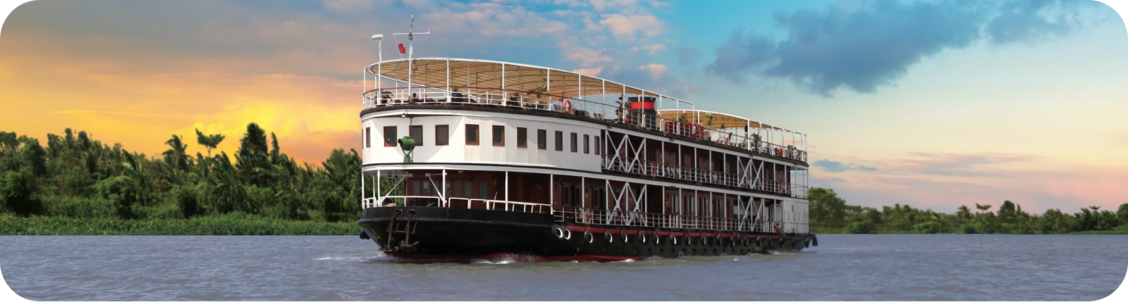 Het schip vaart naar Ben Tre voor een excursie aan wal.