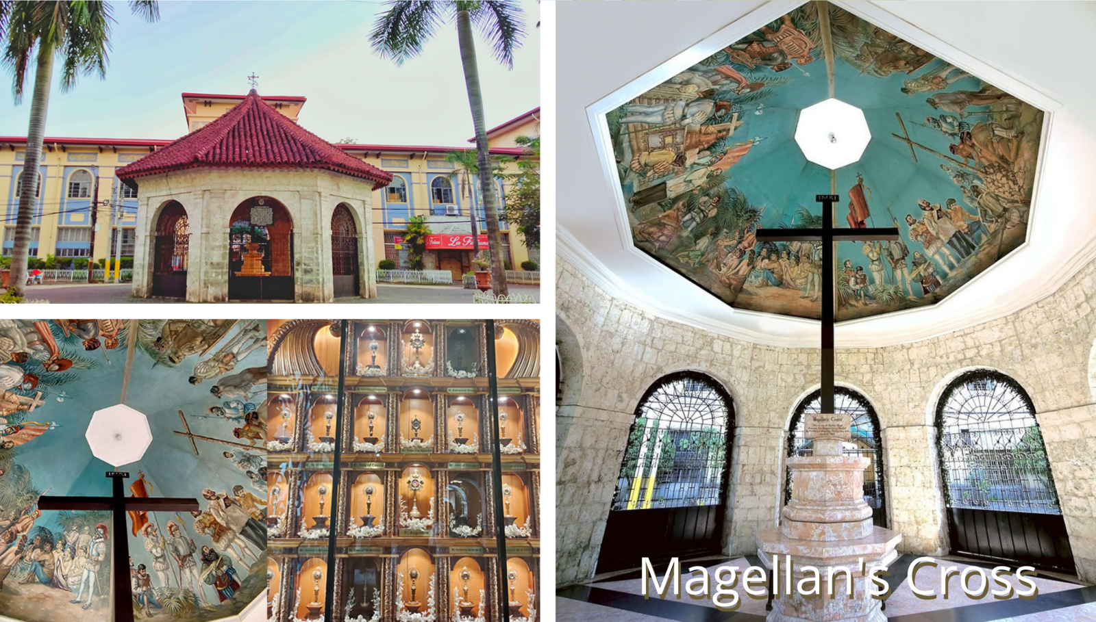 We beginnen bij het beroemde Magellan's Cross, opgericht door de ontdekkingsreiziger Ferdinand Magellaan in 1521.