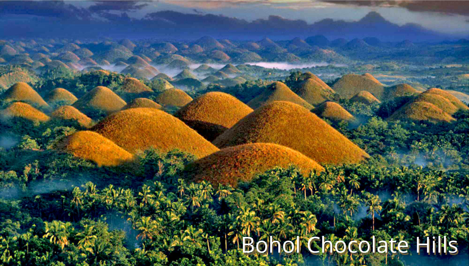 Het bekendst is Bohol om de ‘Chocolate Hills’, een verzameling van kegelvormige heuvels.