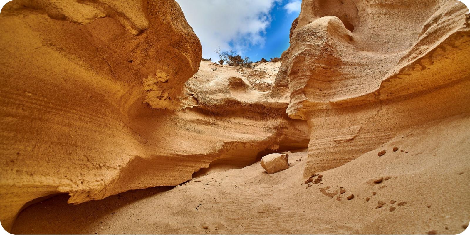 Het glooiende landschap van Fuerteventura is te danken aan vroegere lavastromen.