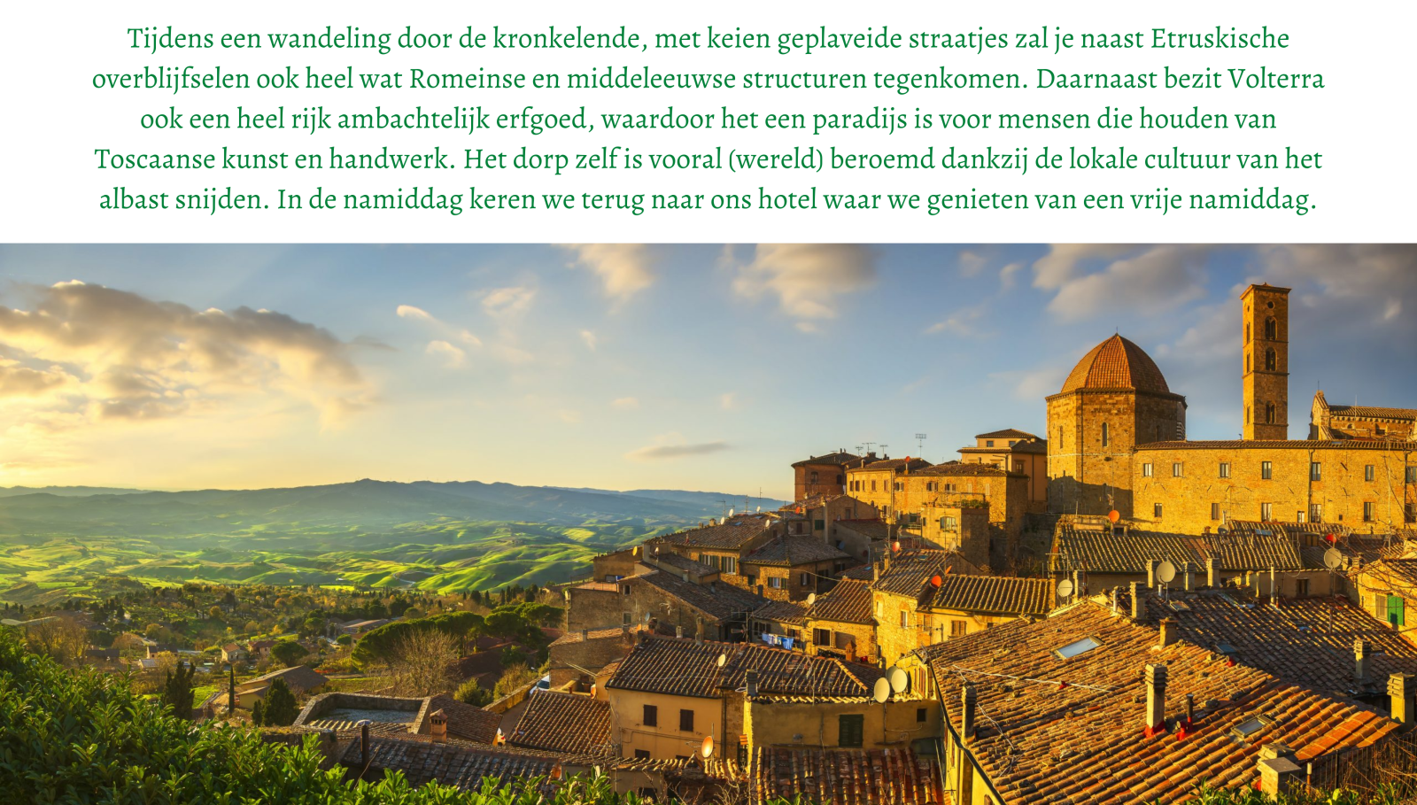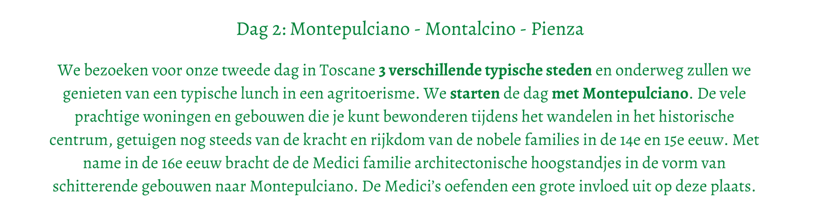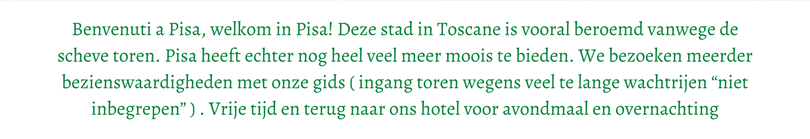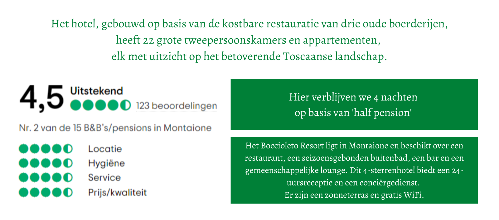 Vanaf het eerste moment dat je in Toscane bent, is de kans groot dat je je hier helemaal thuis zal voelen en niet meer weg wil gaan. 8 dagen genieten!