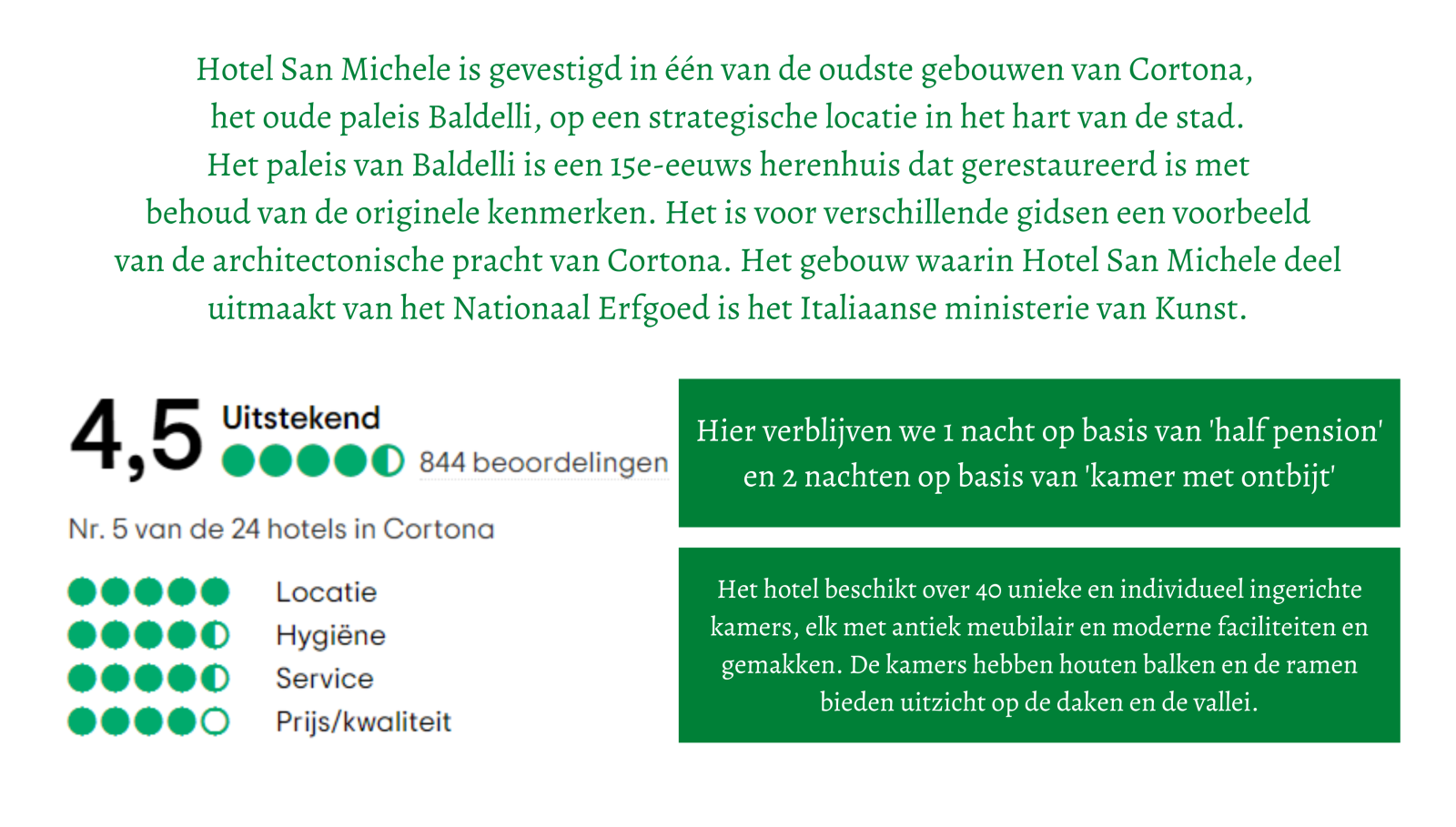 - 3n in 4**** hotel 'San Michele' (1 nacht obv half pension + 2 nachten obv kamer met ontbijt)