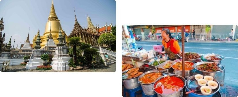 De bruisende stad biedt markten, tempels en moderne winkelcentra, terwijl de Chao Phraya-rivier langs iconische bezienswaardigheden stroomt, zoals Wat Arun en het Koninklijk Paleis.