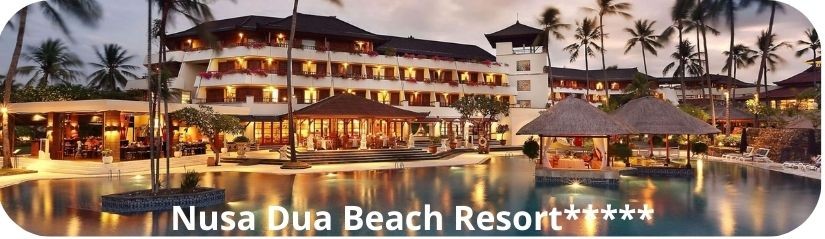 Het Nusa Dua Beach Hotel & Spa is een vijfsterrenresort dat bekendstaat om zijn authentieke Balinese sfeer, koninklijke uitstraling en uitstekende service. Het resort is gebouwd in traditionele paleisstijl en heeft al meerdere staatshoofden en beroemdheden mogen ontvangen.