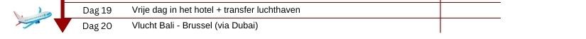 Rond middernacht (nacht van dag 19 op 20) vertrek je vanuit Bali richting Brussel, met een tussenstop in Dubai.