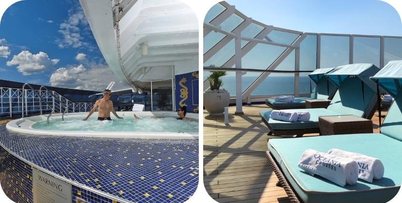 Op het zonnedek vind je een prachtig zwembad omringd door comfortabele ligstoelen. Ontspan in de jacuzzi's of geniet van een verfrissend drankje bij de Waves Bar. De serene omgeving nodigt uit tot pure ontspanning.