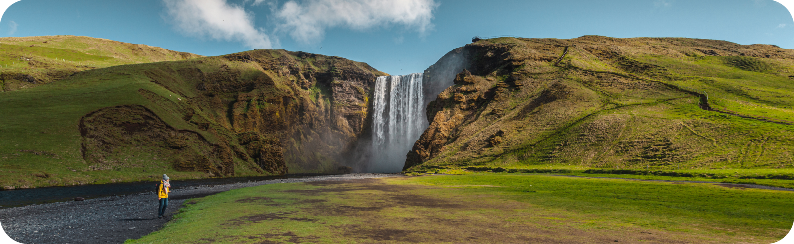Na de Vallei van Thor brengen we langs de kustlijn met zijn unieke lavastranden een bezoek aan de mooie Skogafoss watervallen.