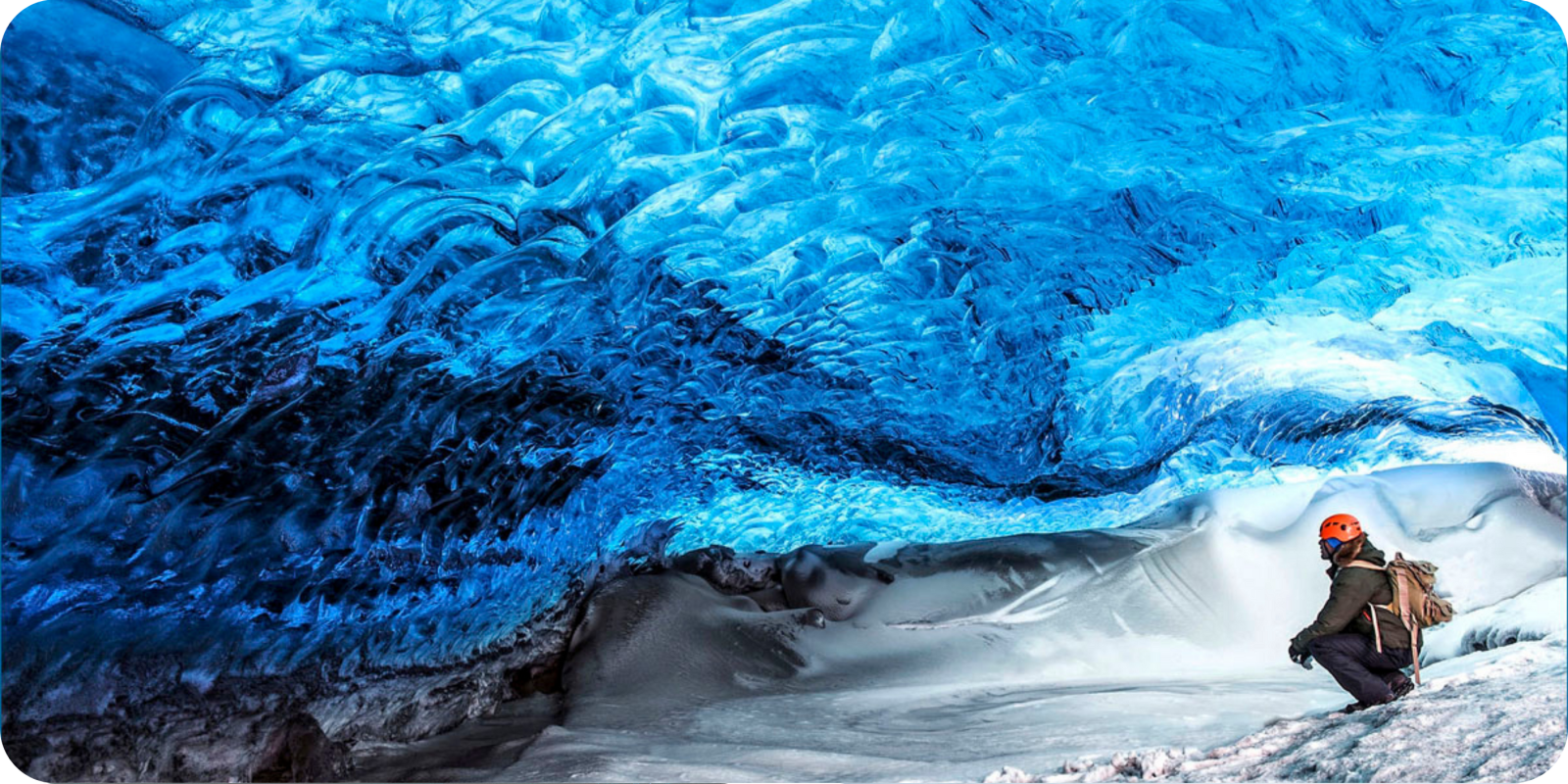 Daarna begeven we ons binnenin de gletsjer en bekijken we het magische blauwe ijs van aan de binnenkant.