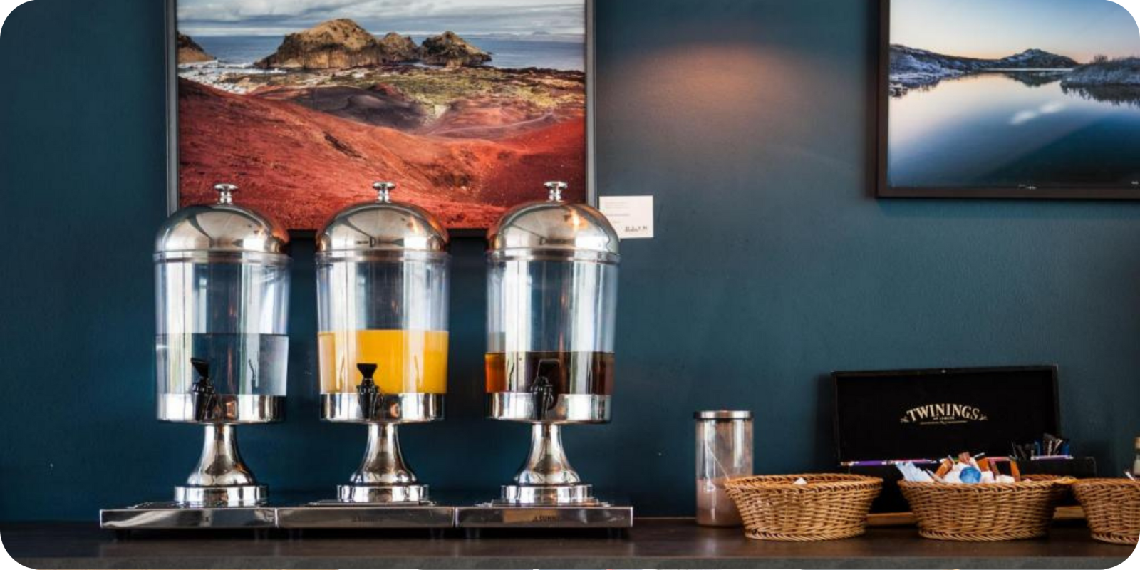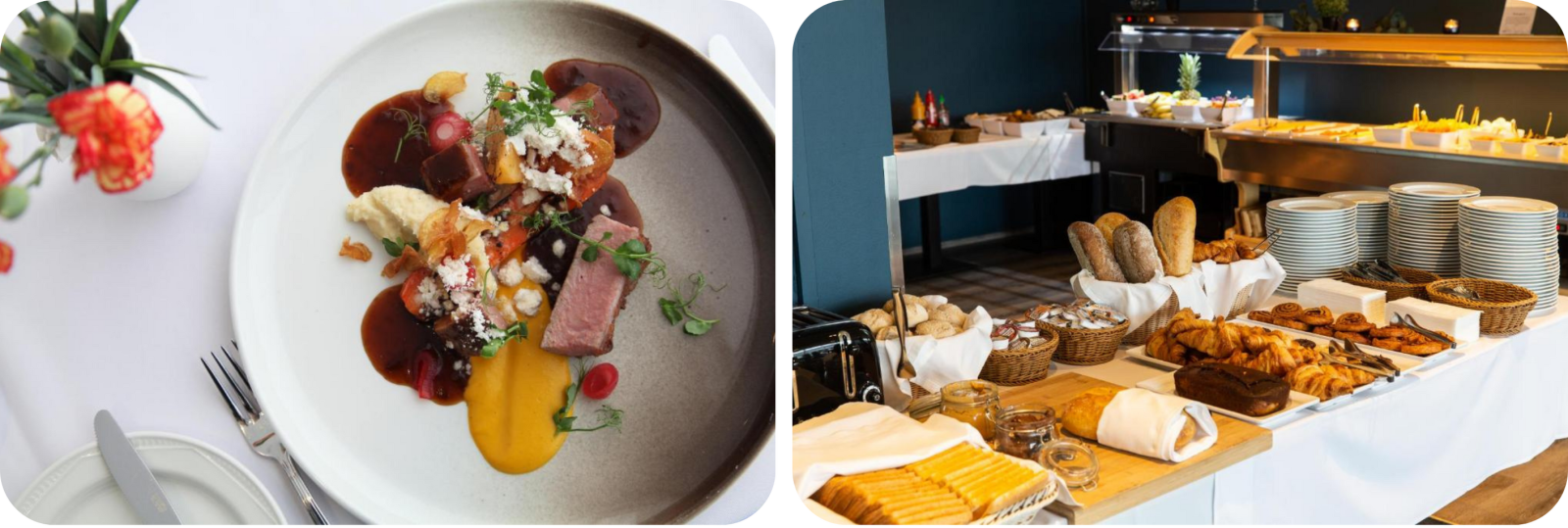 We genieten van ons Scandinavisch ontbijt in het hotel.