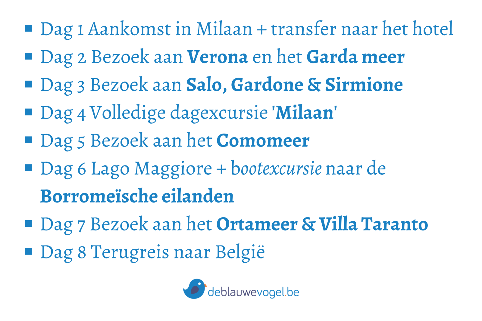 * volgorde van dagprogramma kan steeds wijzigen (inhoud blijft steeds verzekerd)