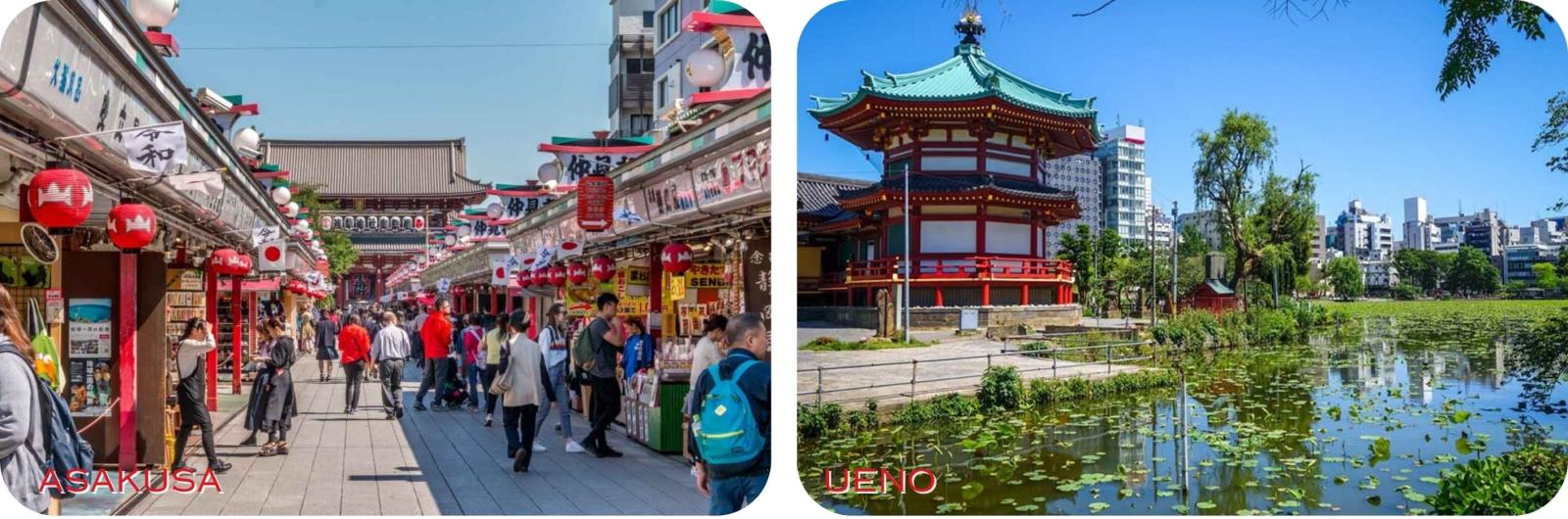 Ueno's musea en parken zijn gewoon adembenemend, terwijl Asakusa beroemd is om haar traditionele tempels.