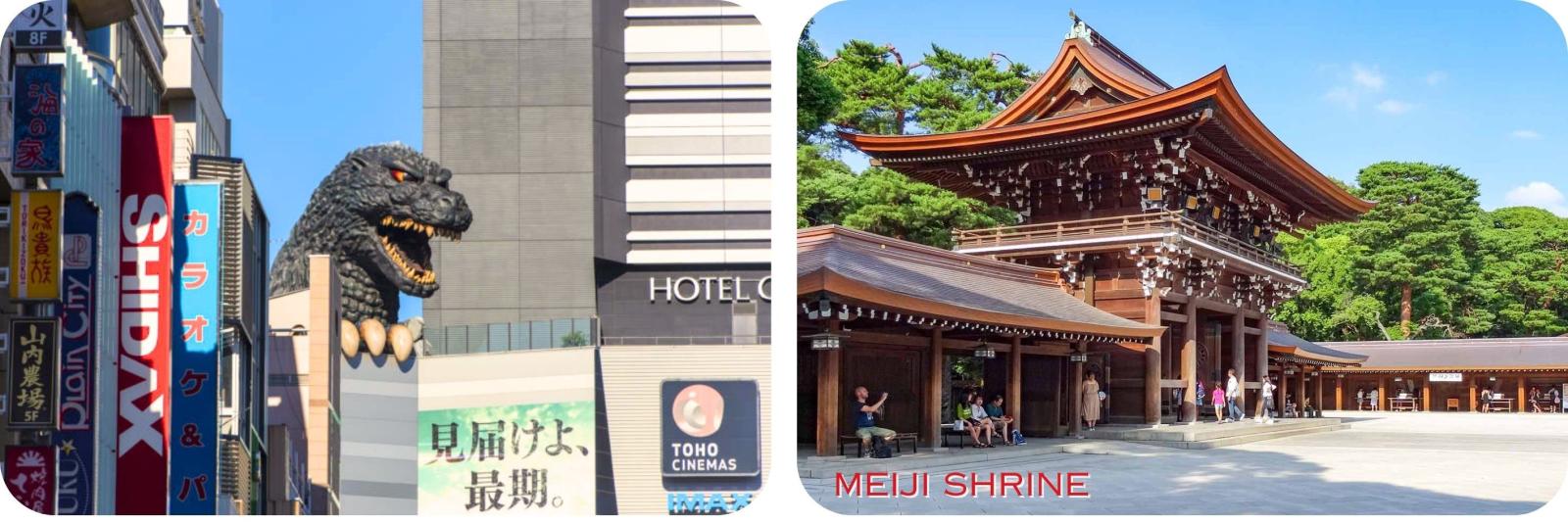 We beginnen in Shinjuku en zien het iconische Godzilla-beeldhouwwerk,
