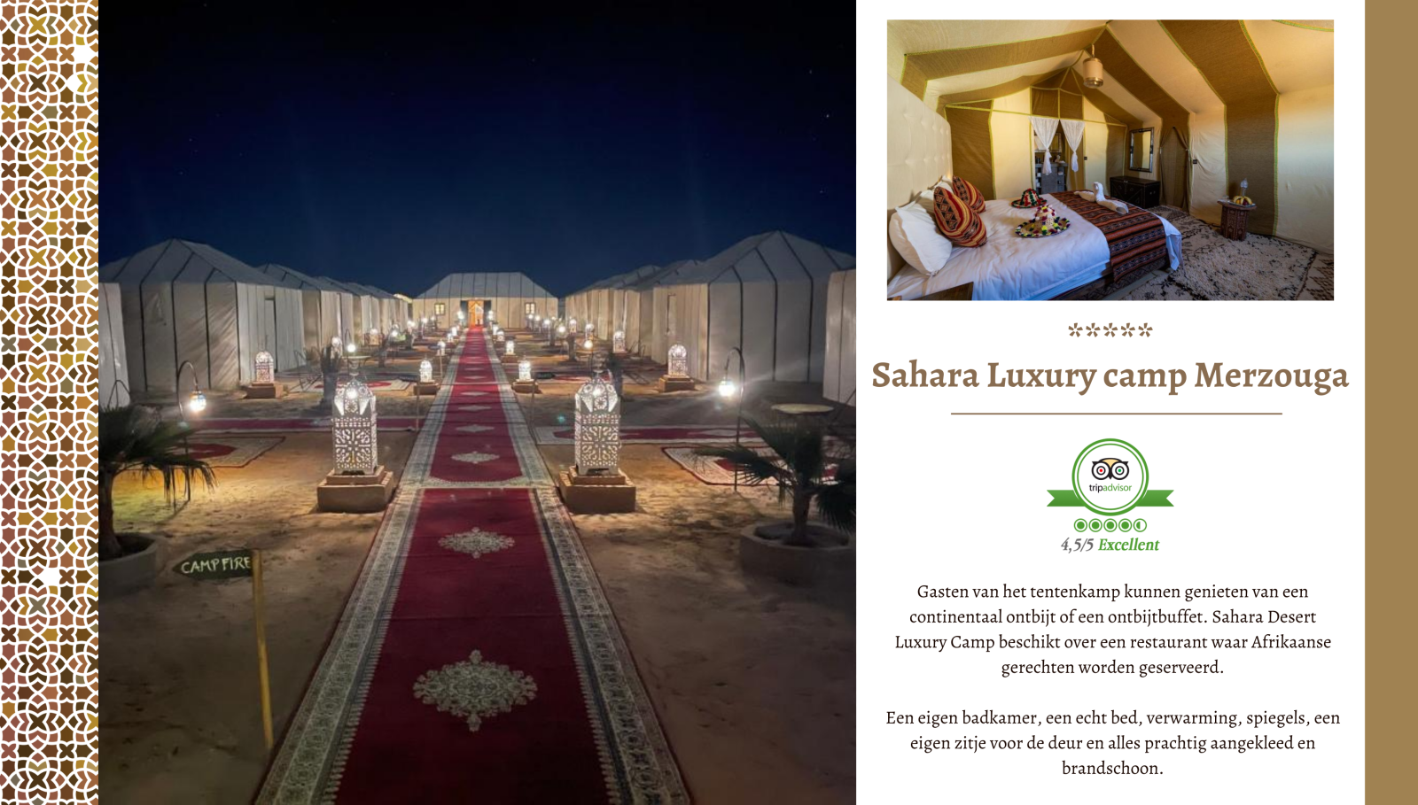* Slaap onder de sterren in luxe tenten in de Sahara
