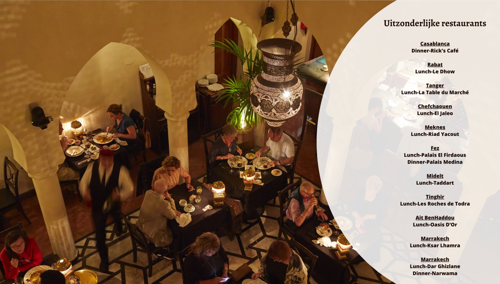 [ VOLPENSION ] : 10 lunches in typische, lokale, luxe restaurants / 3 diners in lokale restaurants / 8 diners in onze verblijfhotels