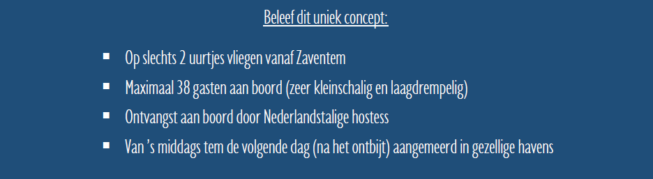 En bij ons knappe pakket is er ALTIJD een Vlaamse hostess / gids aan boord en dagelijks een