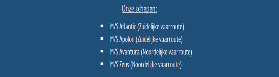 Varen doen we in stijl met ofwel de M/s Atlantic of de M/s Avantura ( 5*****-categorie )