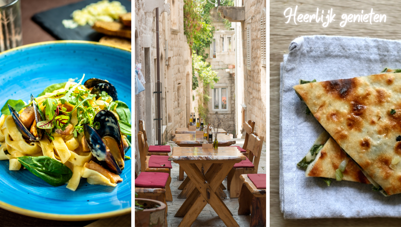Keuken : overheerlijke vis, oesters, reuze-brochettes, gedroogde ham, gevulde koolbladen zijn enkele Kroatische specialiteiten.