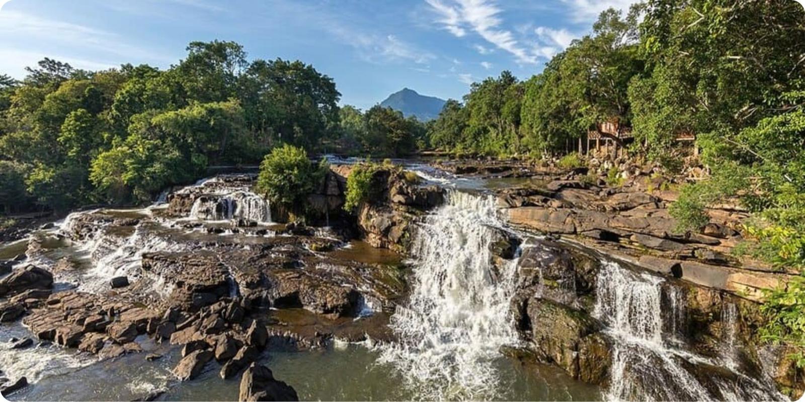de Cambodjaanse grens. De lokale bevolking vereert de watervallen omdat ze fungeren als een val voor boze