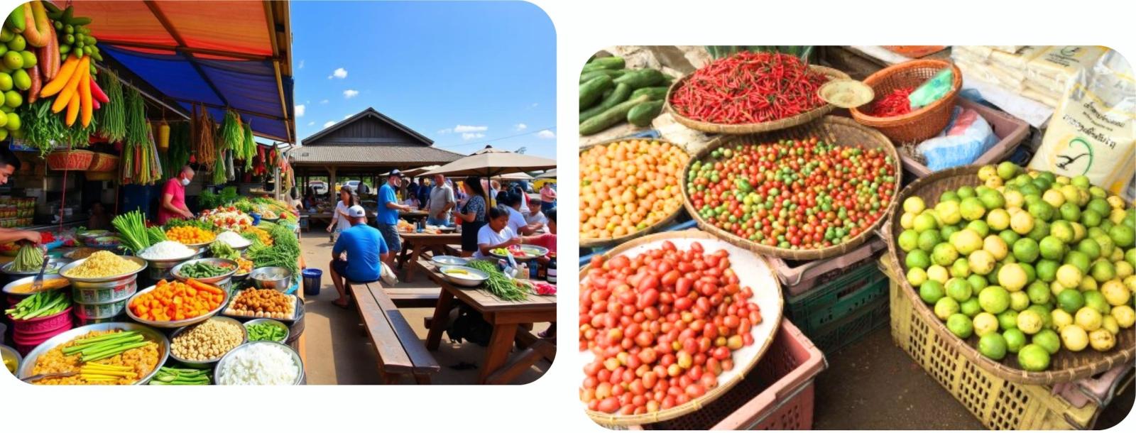 terwijl ’s avonds de lokale bevolking uit de naburige dorpen naar de avondmarkt trekt.