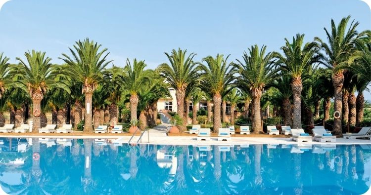 geniet van de Griekse keuken, en ’s avonds tot rust komt tussen palmbomen en olijfgaarden bij Aphrodite Hotel.