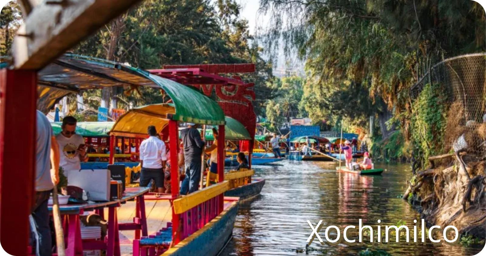 Vaar door de kleurrijke wateren van Xochimilco, waar mariachi-klanken en drijvende tuinen de sfeer bepalen.