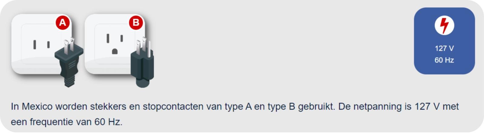 In Mexico gebruiken ze stopcontacten van type A en B. In België heb jij stekkers C en E.