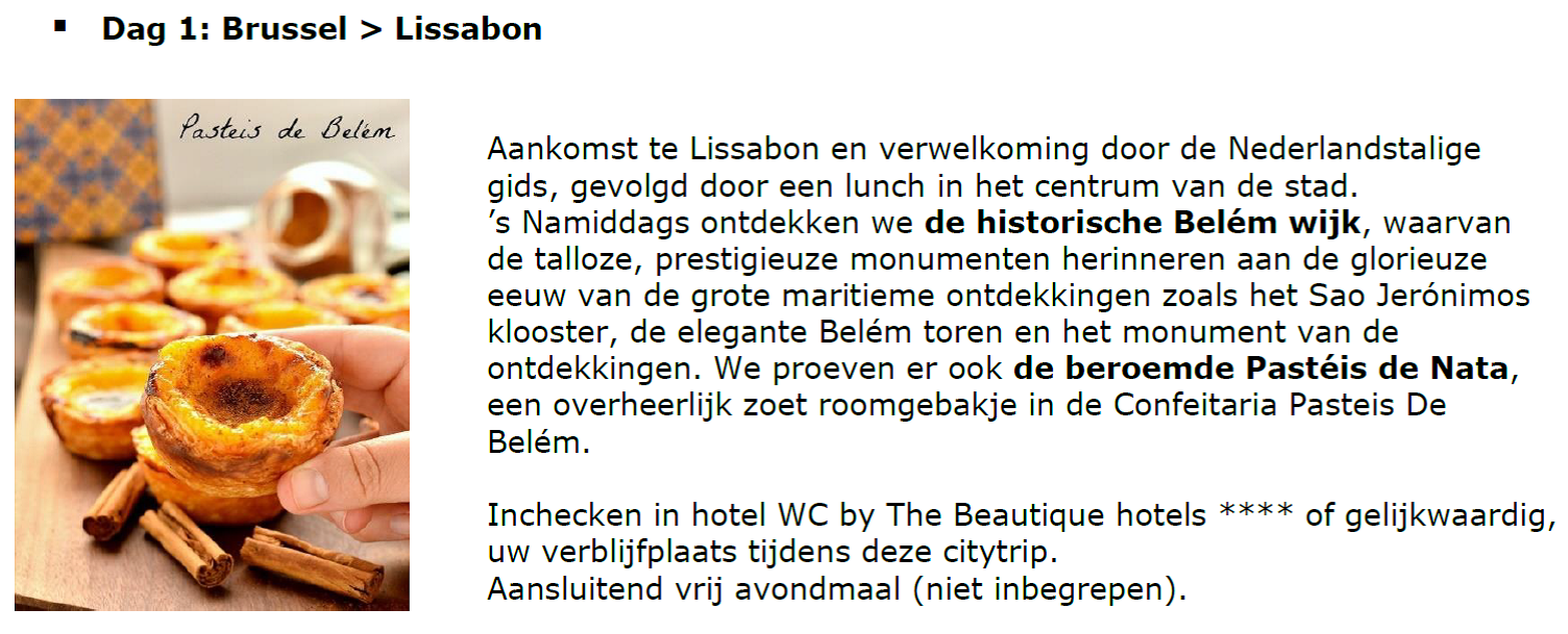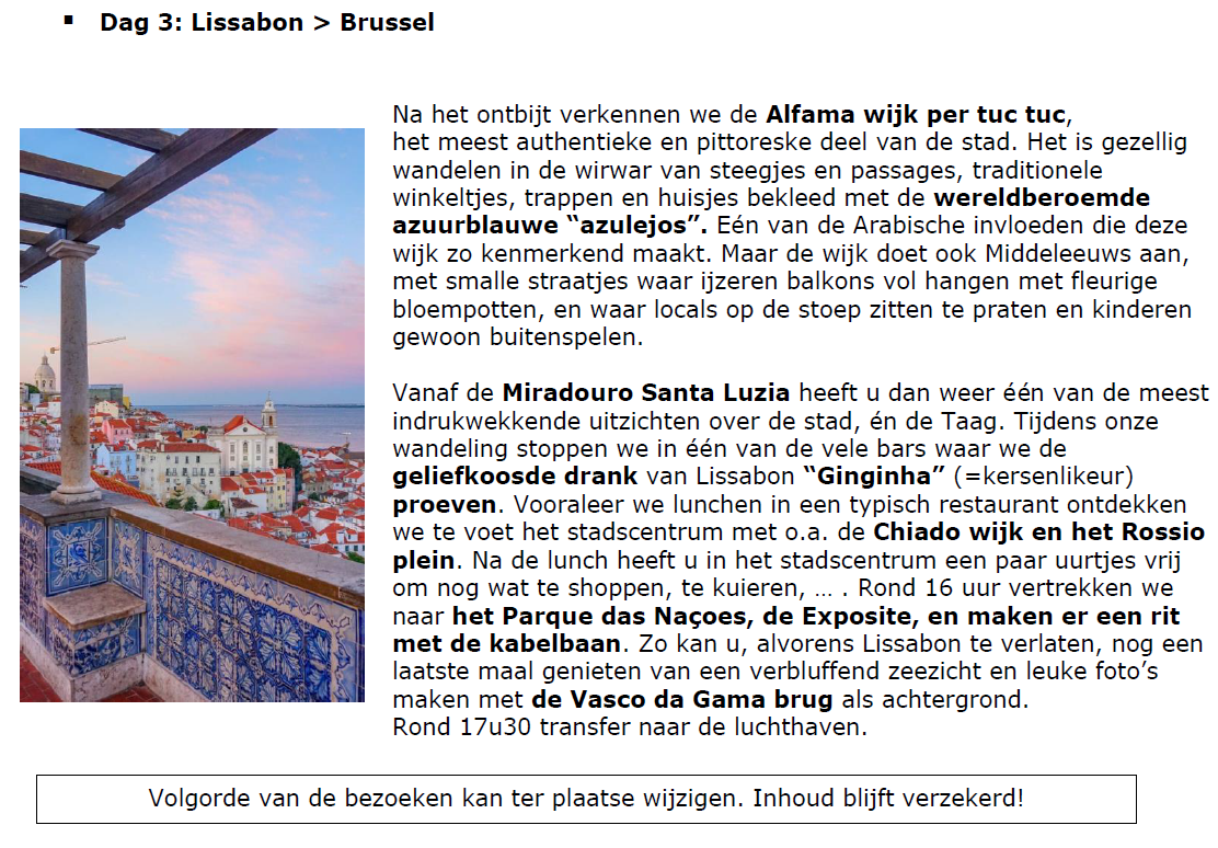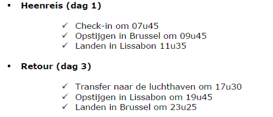 * Vlaamse gids gedurende excursies, alsook bij aankomst en vertrek