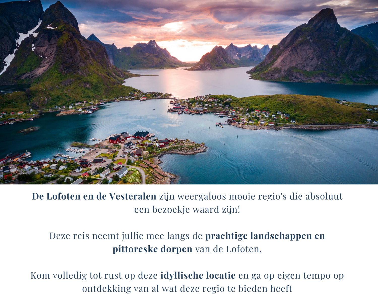 Deze reis neemt jullie mee langs de prachtige landschappen en pittoreske dorpen van de Lofoten.