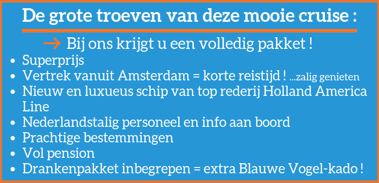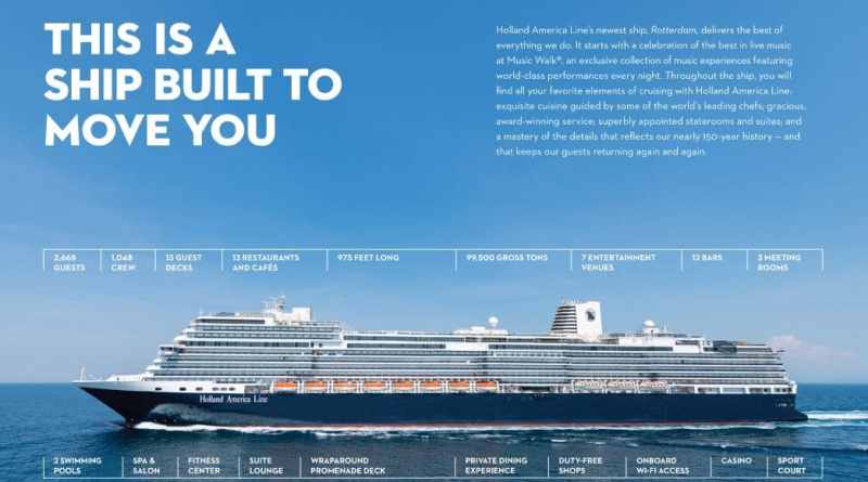 En dit met het allernieuwste schip van de stijlvolle rederij Holland America Line.