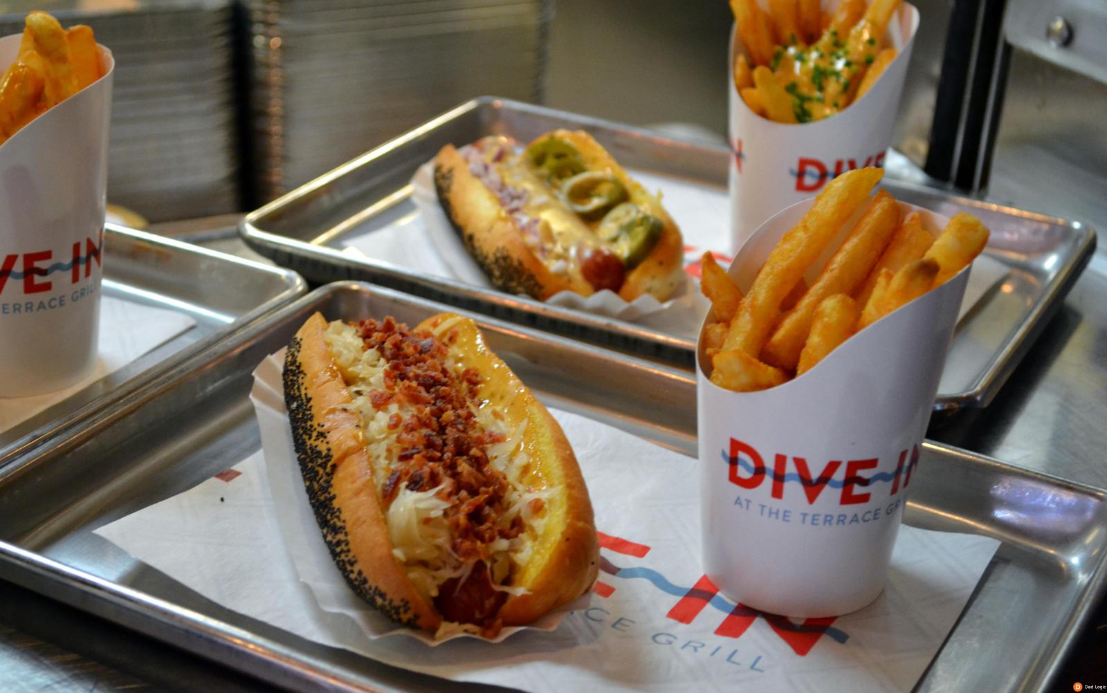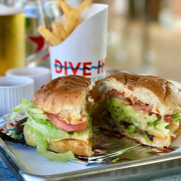 De DIVE IN : hier kan U overheerlijke hamburgers ( 5 verschillende ! ), die a-la-minute voor U worden gemaakt.