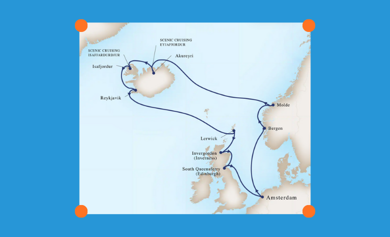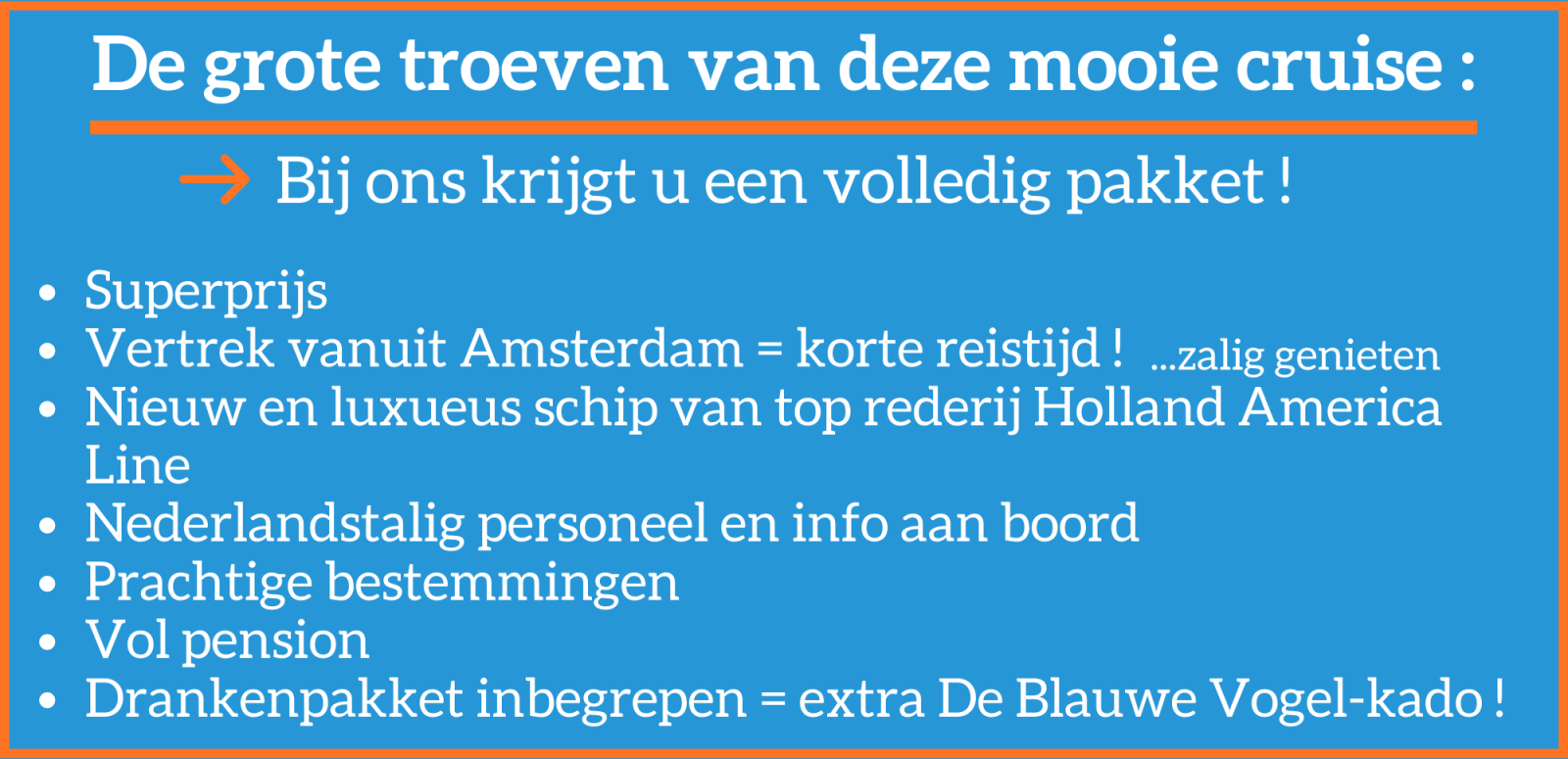 Deze topper is het neusje van de zalm. Een super mooie mix van bestemmingen en 4 dagen Ijsland en dit aan boord van het allernieuwste schip van Holland America.