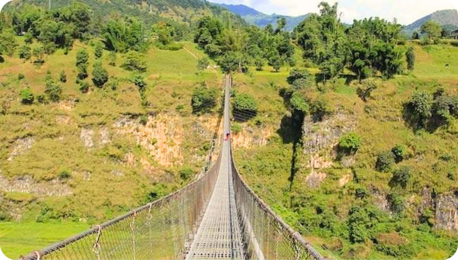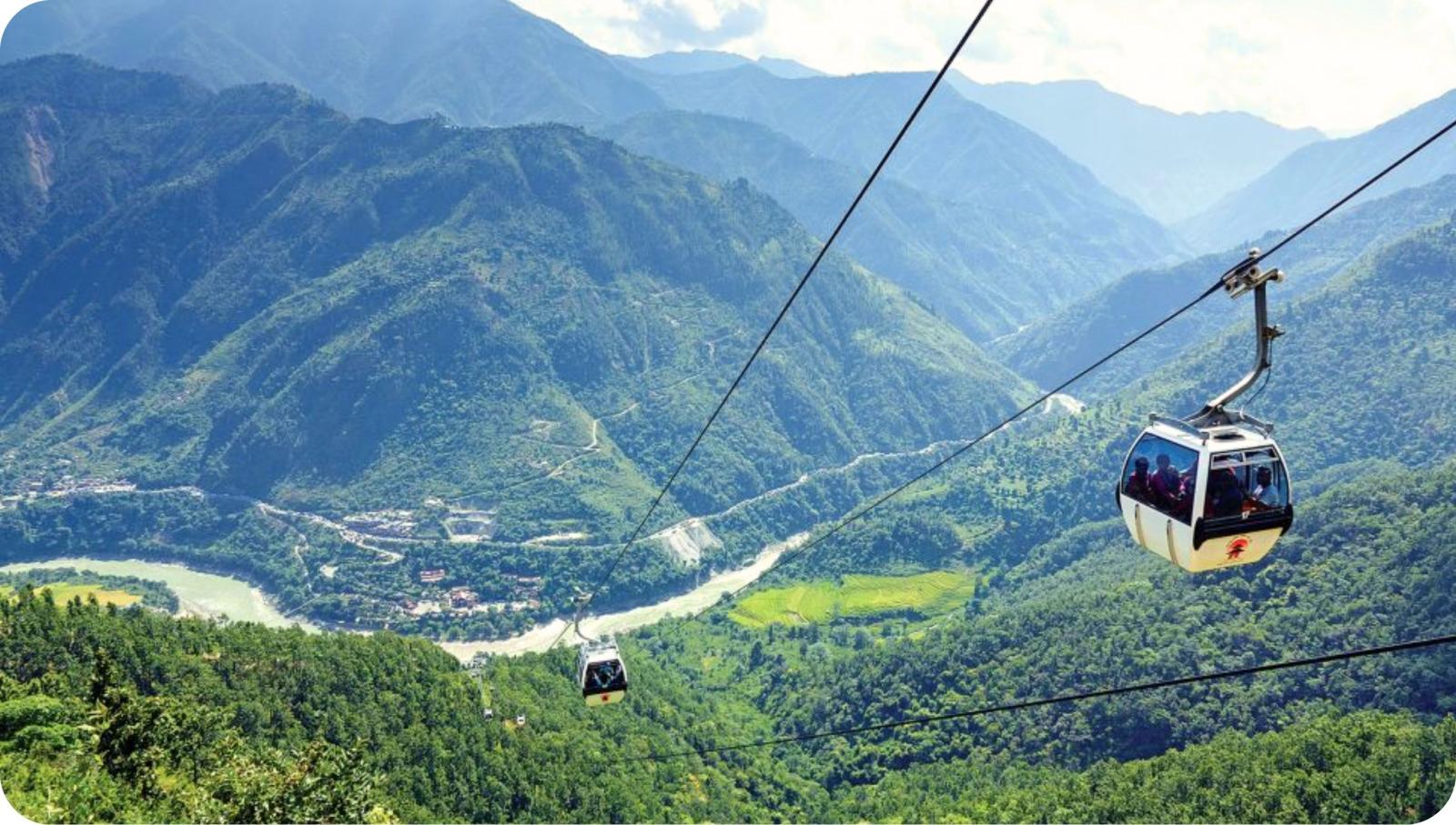 Onderweg geniet je van het uitzicht op groene heuvels, terrasvormige velden, dorpjes en tempels.