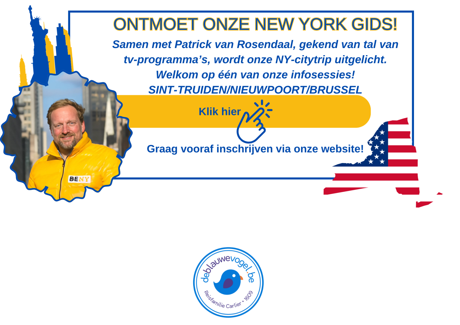 + Blauwe Vogel-begeleiding door onze New York specialist van Brussel tot Brussel.
