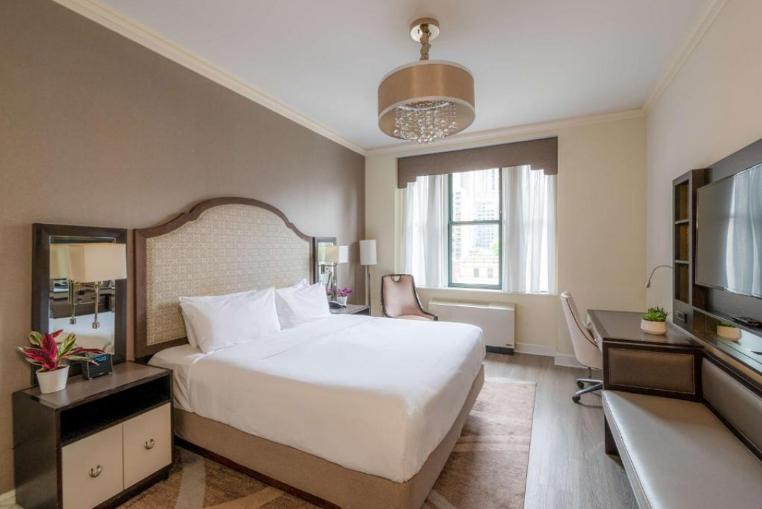 Het hotel staat bekend om zijn uitstekende voorzieningen, waaronder een dakterras met een panoramisch uitzicht over de skyline van New York.