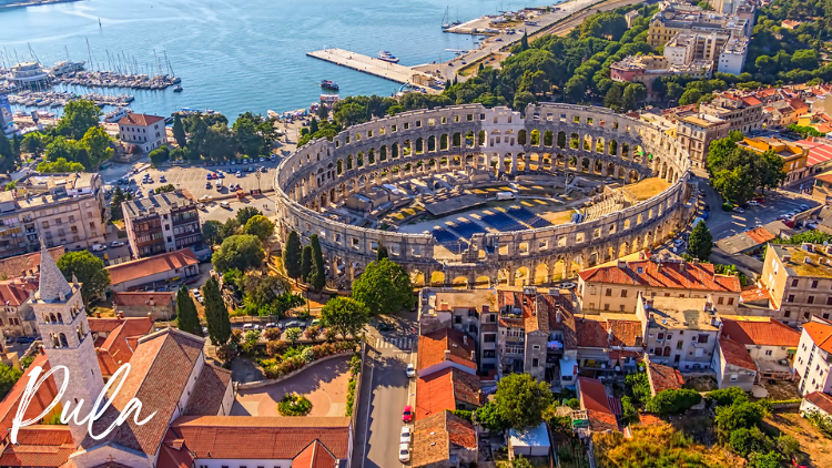 We rijden verder naar Pula, thuisbasis van tal van culturele bezienswaardigheden: de Romeinse Arena, de Tempel van Augustus, de Kathedraal van Pula.