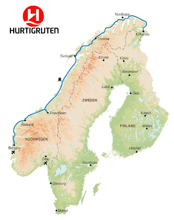Een wel heel speciale reis ! Uitzonderlijk : nu met Blauwe Vogel-vlucht non stop van Brussel naar Bergen vliegen ! Noorwegen Hurtigruten