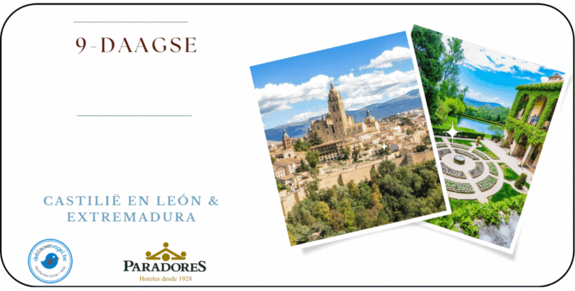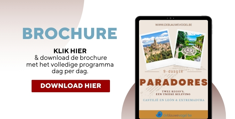 *Rechtstreekse vluchten: Brussel – Madrid – Brussel *Alle transfers ter plaatse *Luxe touringcar gedurende volledig verblijf * TOP Nederlandstalige lokale Blauwe Vogel gids gedurende de volledige reis *1 overnachting in de parador te Ávila op basis van half pension *2 overnachtingen in de parador te Salamanca (1x half pension & 1 x kamer met ontbijt) *1 overnachting in de parador te Plasencia op basis van half pension *3 overnachtingen in de parador te Trujillo op basis van half pension (1 x kamer met ontbijt) *1 overnachting in de parador te Toledo op basis van half pension *Alle vermelde excursies en inkomgelden vermeld in het programma *Typische proeverij van Jamón Ibérico *Audioguidesysteem *BTW, huidige taksen en garantiefonds