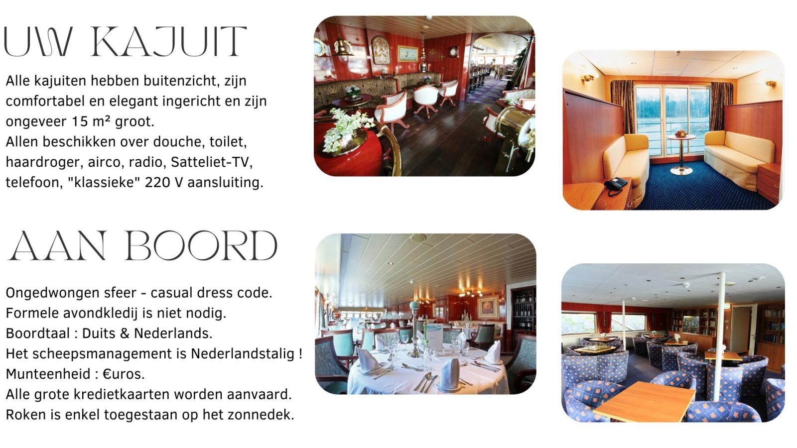 (enkel 4 singelkajuiten beschikbaar op onderste dek met klein venster)
