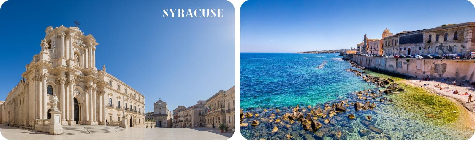 het Griekse theater, het Romeinse amfitheater, “de Latomie van het Paradijs” (oude steengroeven) en het oor van Dionysius.