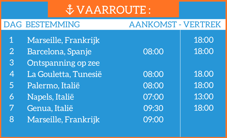 * 8 daagse toffe Middellandse Zee cruise met de mooiste aanleghavens.