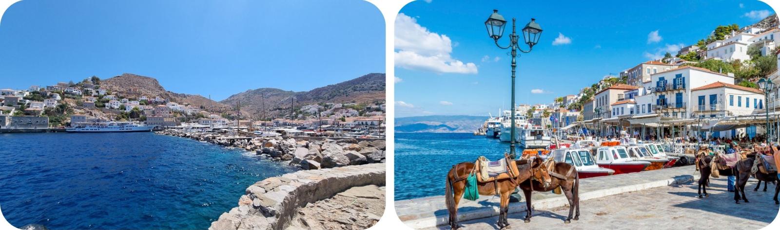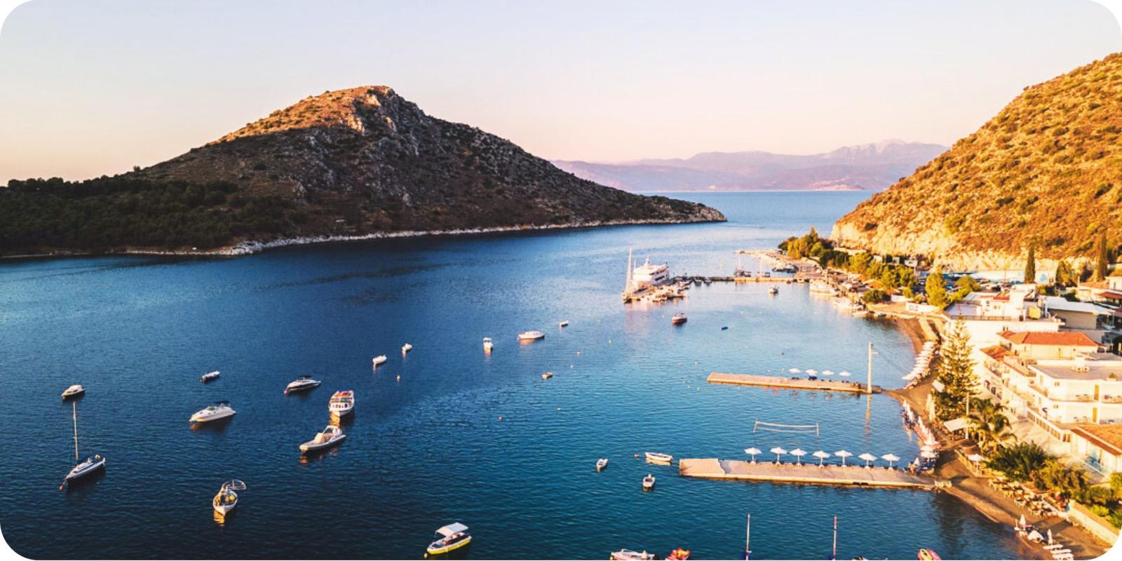 We vertrekken uit de haven van Tolo en varen naar het eiland Hydra, in de Egeïsche Zee.