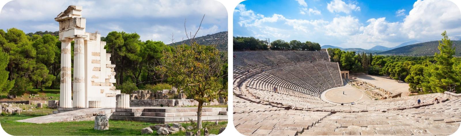 Na het ontbijt bezoeken we in de voormiddag het theater van Epidaurus,