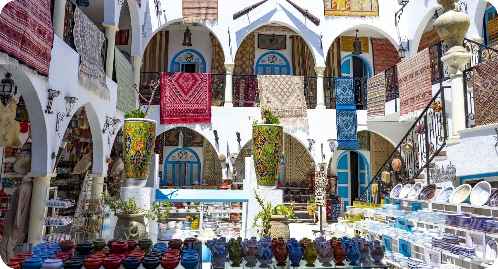 Dwaal door de smalle straatjes vol witte huisjes, ontdek kleurrijke souks waar je lokale handwerken,