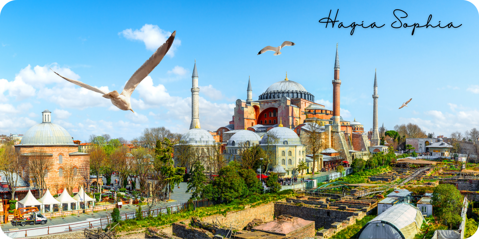de adembenemende blauwe tegels die het interieur sieren. We zien de Hagia Sophia,