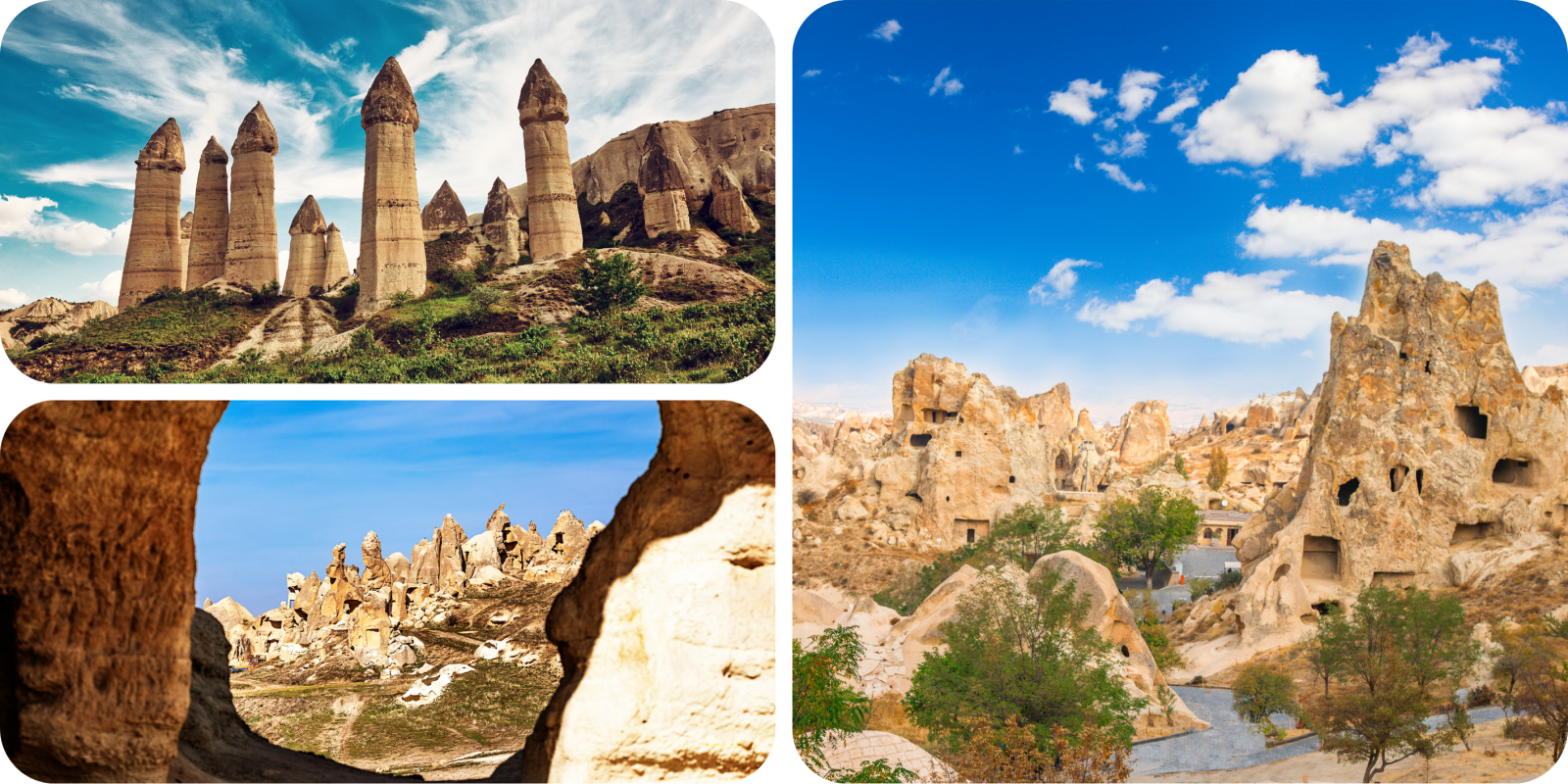 Vandaag komt u na ongeveer 3 uurtjes aan in de unieke landstreek Cappadocië, welke bestaat uit sprookjesachtige valleien en grotten.