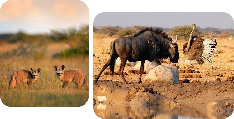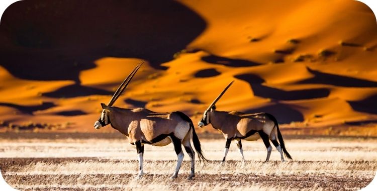 Wildsoorten zoals springbok, gemsbok en struisvogel hebben zich aangepast aan het extreme woestijnklimaat en kunnen hier gespot worden.