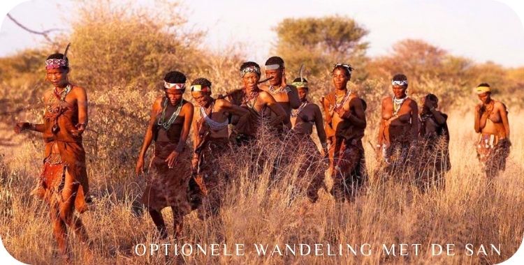 ‘s Ochtends kan u tijdens een optionele (betalend) wandeling kennismaken met de leefwereld van de lokale San.