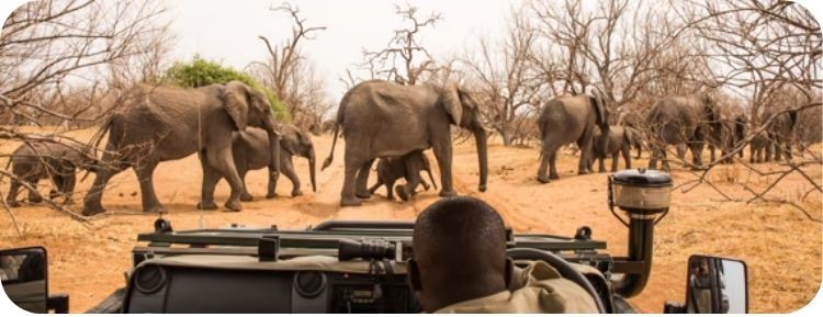 Check-in, avondmaal en overnachting. De volgende ochtend trekken we er op uit met de jeep voor een safari in het Chobe Nationaal Park.