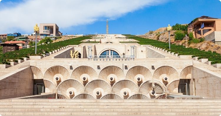 Een bijzonder bouwwerk is de Cascade van Yerevan, waarvan de bouwwerkzaamheden begonnen zijn in de Sovjettijd.